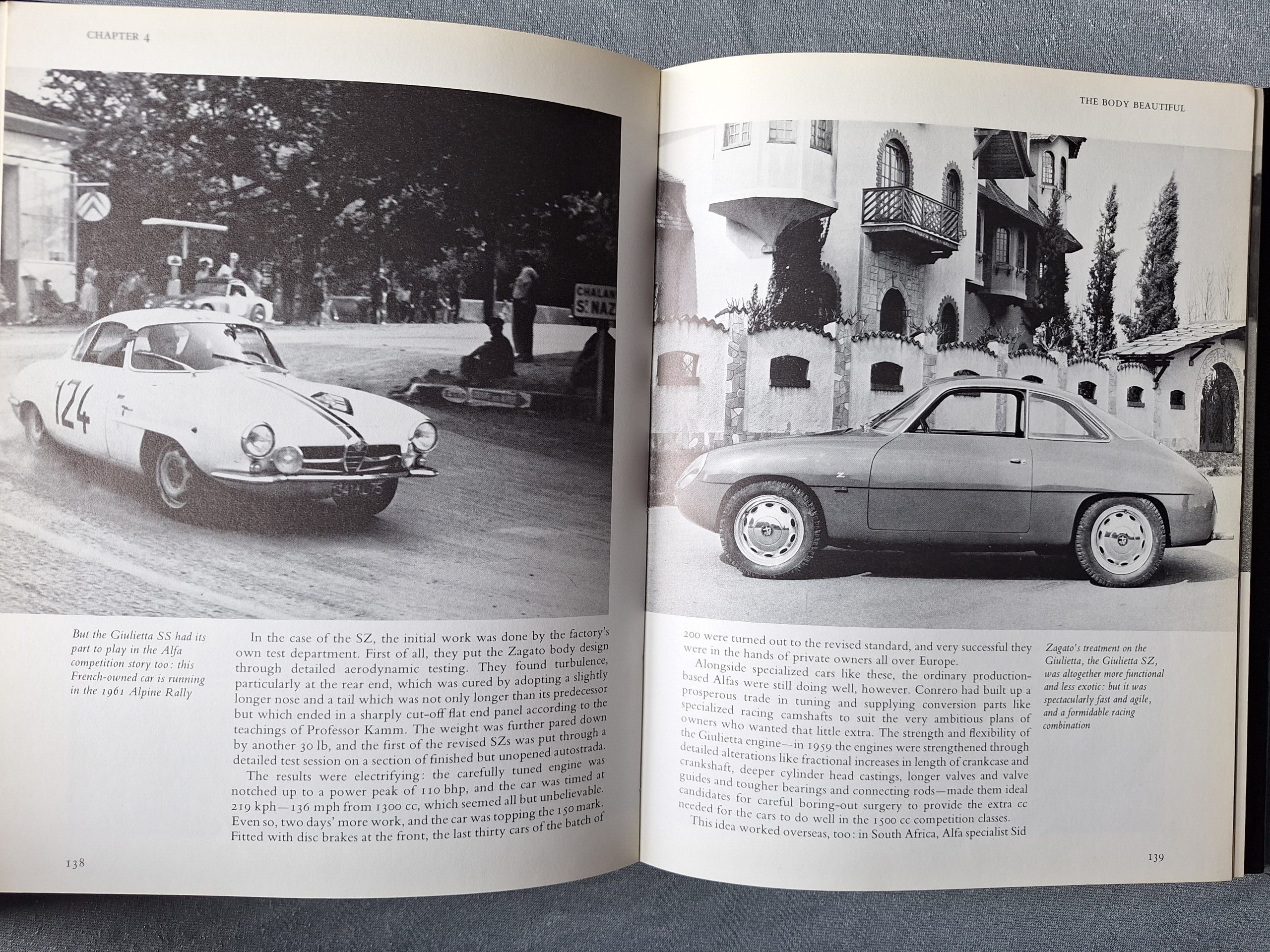 Describes the The post-war four cylinder twin-overhead camshaft Alfa Romeos: 1900, Giulietta, Giulia, Alfetta, New Giulietta
